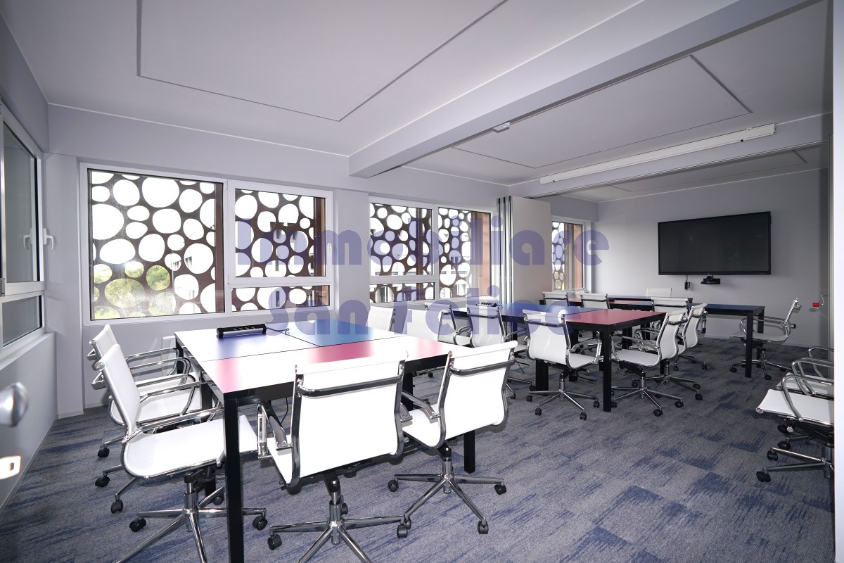 Sono presenti nella struttura sale riunioni attrezzate, ideali per incontri formali o riunioni operative. L'ampio ingresso dell'edificio di 100 mq che accoglie i visitatori, può essere utilizzato anche come spazio multifunzionale per eventi aziendali, o momenti di networking. Quotazioni su richiesta.