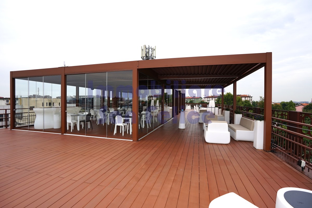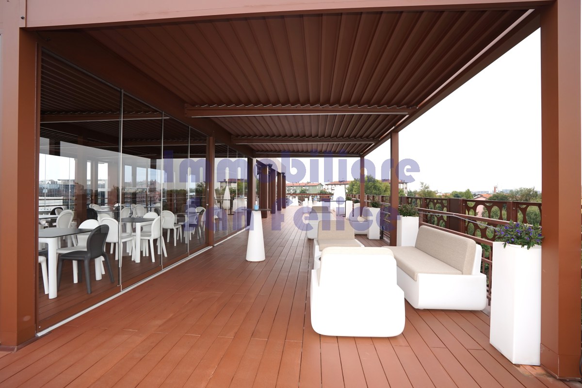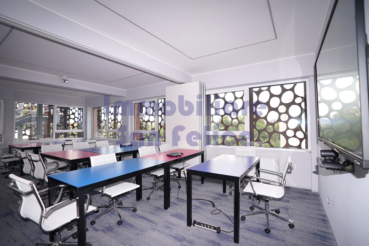 L'edificio dispone anche di un'area esterna del rooftop, molto elegante, accessibile per momenti di pausa, incontri informali, attività di team building o semplicemente per godere di uno spazio all’aperto in un contesto piacevole e rilassato.