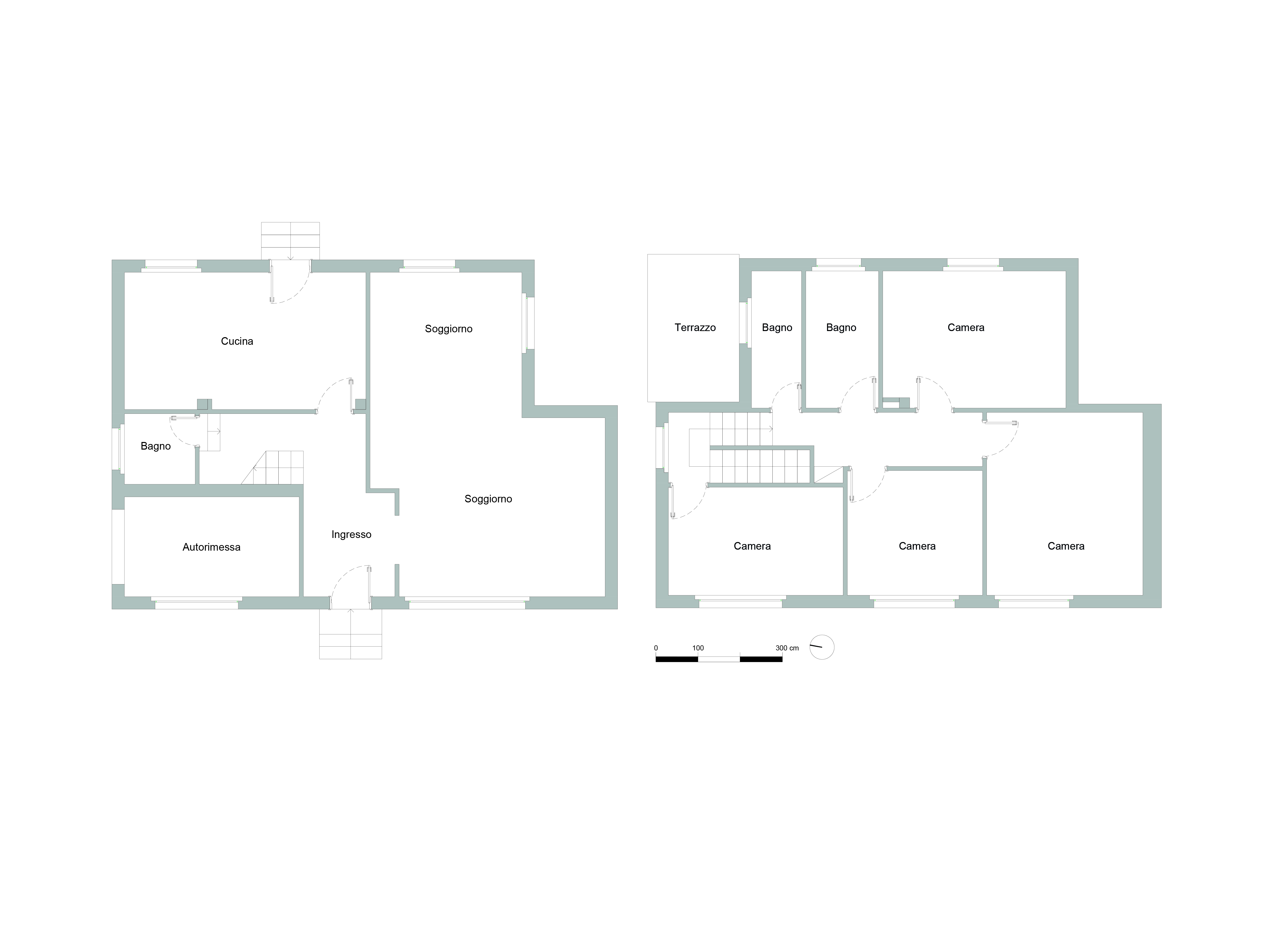 L'unità è composta al piano terra da ingresso, cucina abitabile, soggiorno doppio, servizio/lavanderia. Al piano ammezzato troviamo un locale studio e al primo piano 3 camere da letto e due servizi di cui uno con balcone.
