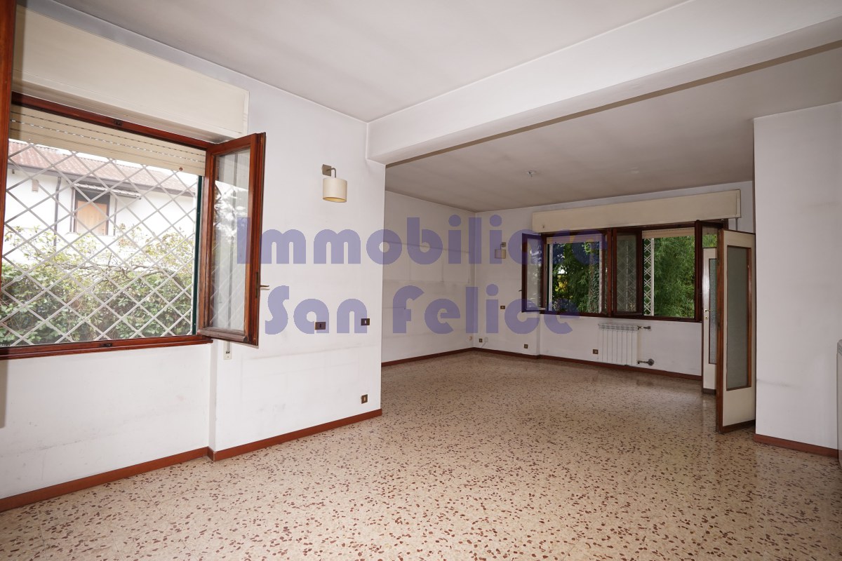 SEGRATE - VILLAGGIO AMBROSIANO Via Papa Giovanni XXIII, contesto residenziale di sole ville a soli 3 km da Milano proponiamo in vendita in esclusiva, villa singola di 180 mq disposta su due livelli, circondata da un grande giardino privato di 2.200 mq circa.