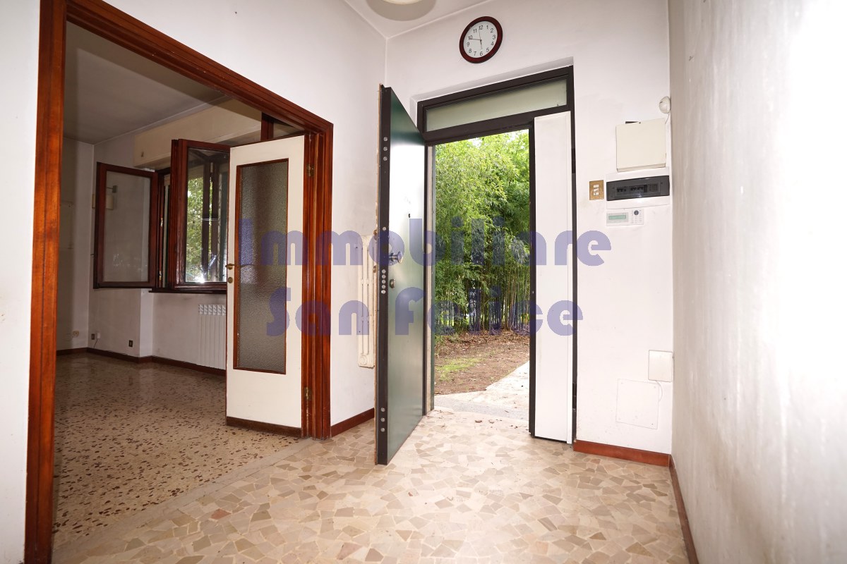 Un vialetto d'accesso privato conduce all'ingresso del giardino della villa, caratteristica importante che garantisce maggiore privacy e tranquillità alla proprietà che non ha affacci diretti sulla strada in quanto ubicata all'interno.
