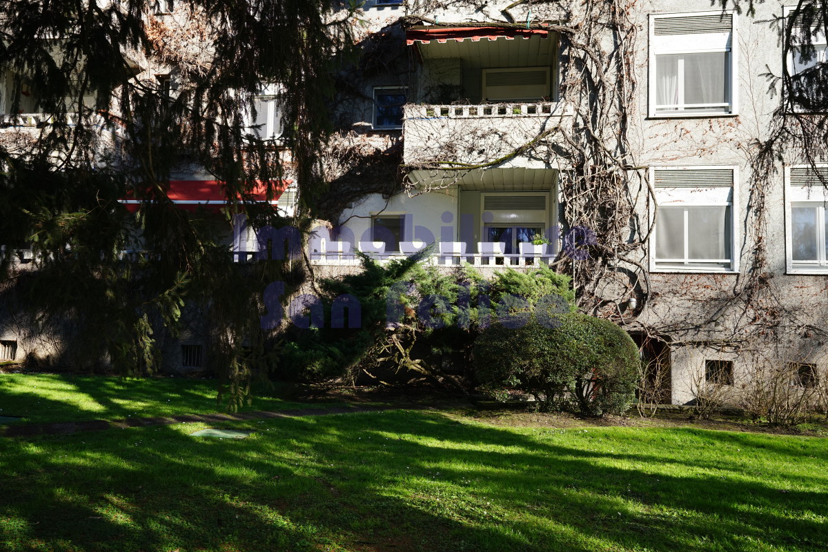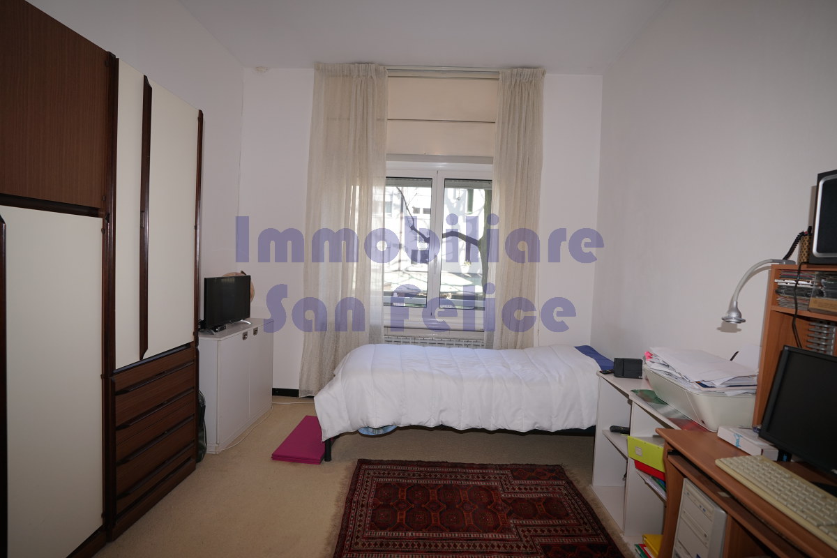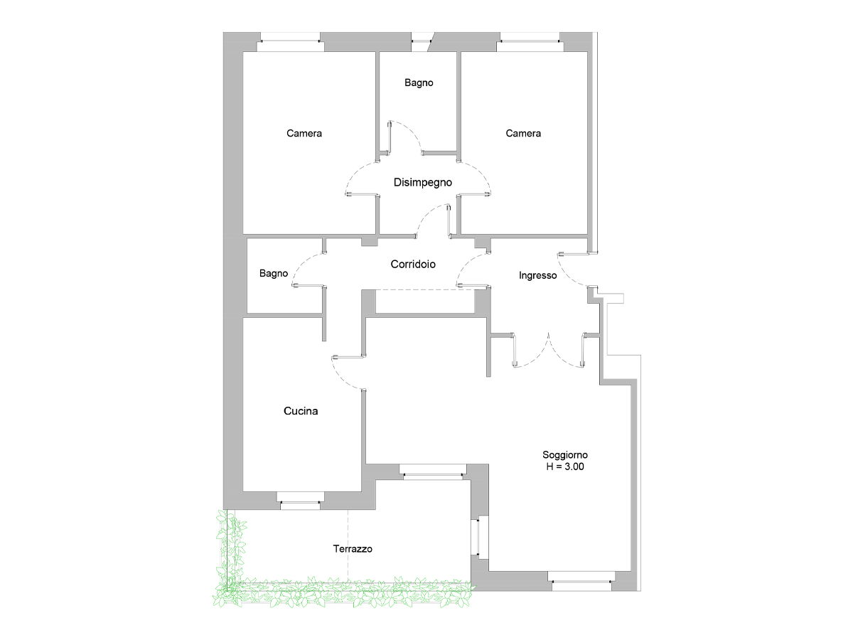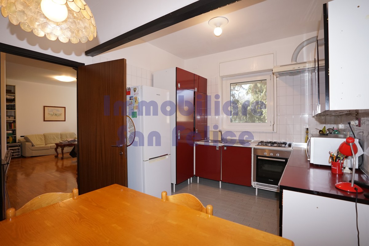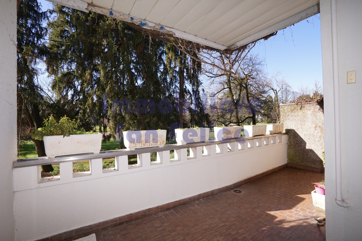 L’ingresso conduce a un ampio salone doppio, con accesso diretto al terrazzo di circa 10 mq, parzialmente coperto, con piacevole e riservata vista sul parco.