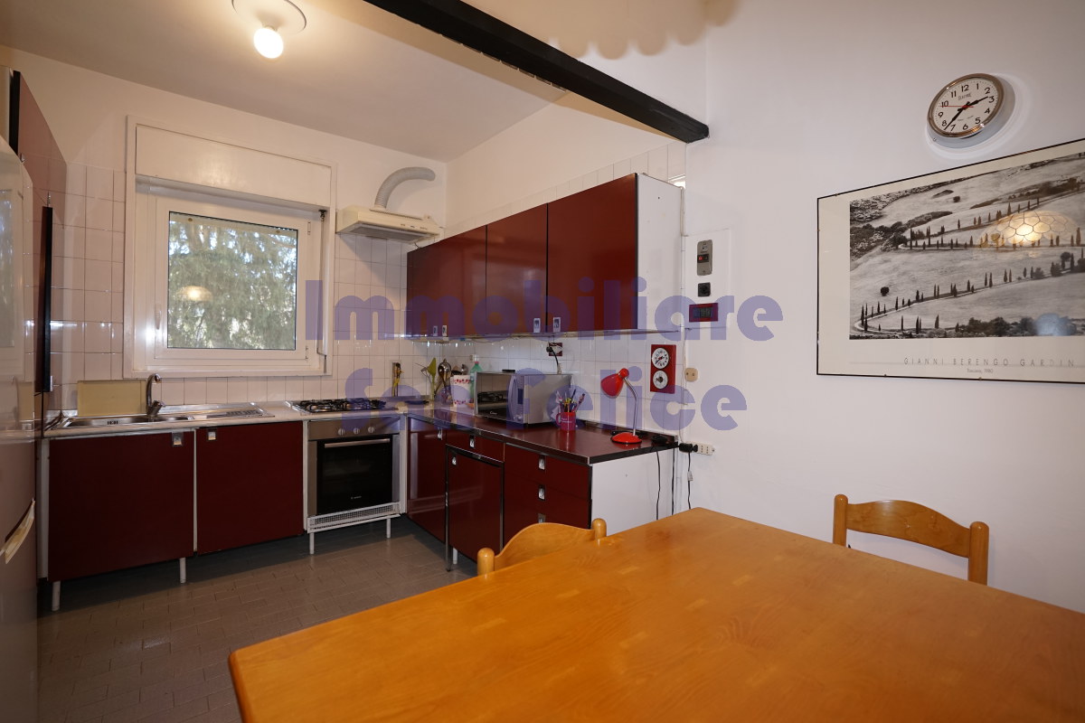 Adiacente al soggiorno troviamo una spaziosa cucina abitabile, ideale per la vita quotidiana.
