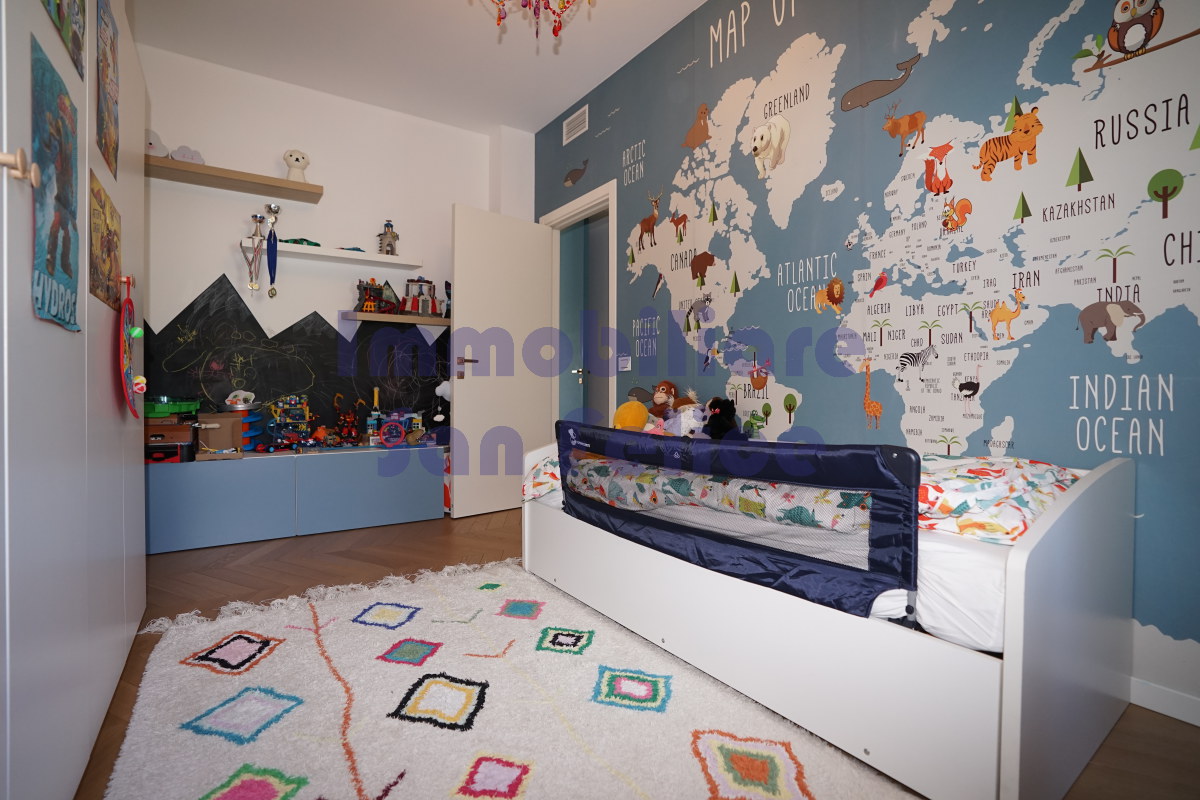Dalla zona giorno si accede da un lato ad una camera/studio completa di armadiatura a tutta parete e da un altro lato alla zona notte. Quest'ultima è così composta: